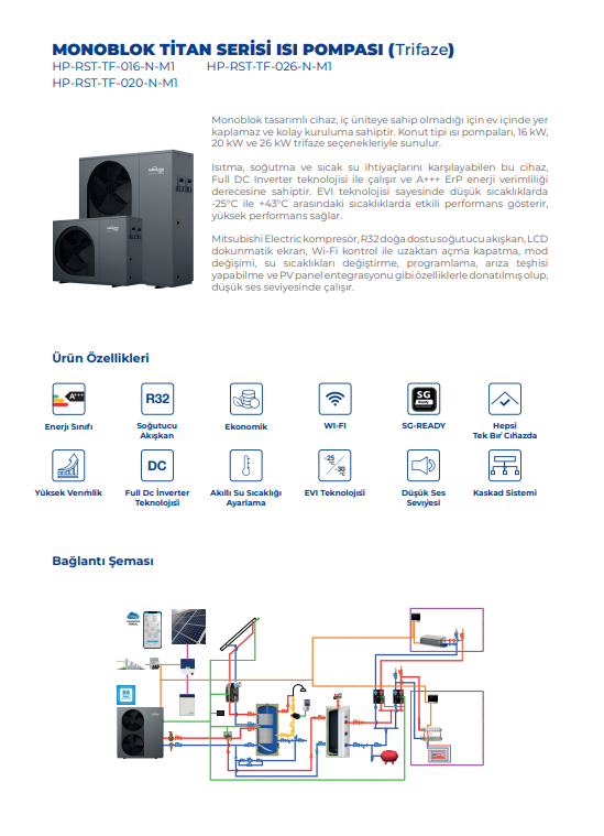 TommaTech 20 kW Isı Pompası (TriFaze), ısıtma, soğutma ve kullanım sıcak suyu ihtiyaçlarını tek bir cihazda karşılamak üzere geliştirilmiş, yüksek verimli, akıllı ve çevre dostu bir ısı pompası çözümüdür. Full DC inverter, EVI teknolojisi ve R32 soğutucu akışkan kullanımı sayesinde zorlu iklim koşullarında dahi kararlı ve verimli performans sunar.