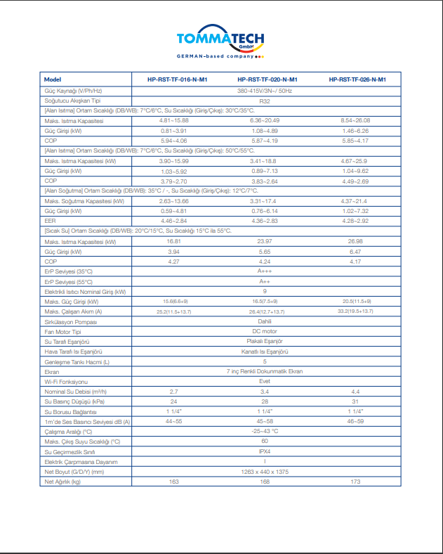 TommaTech Serisi Isı Pompaları; ısıtma, soğutma ve kullanım sıcak suyu ihtiyaçlarını tek bir sistemde karşılayarak konut ve ticari alanlar için verimli, ekonomik ve modern bir çözüm sunar.